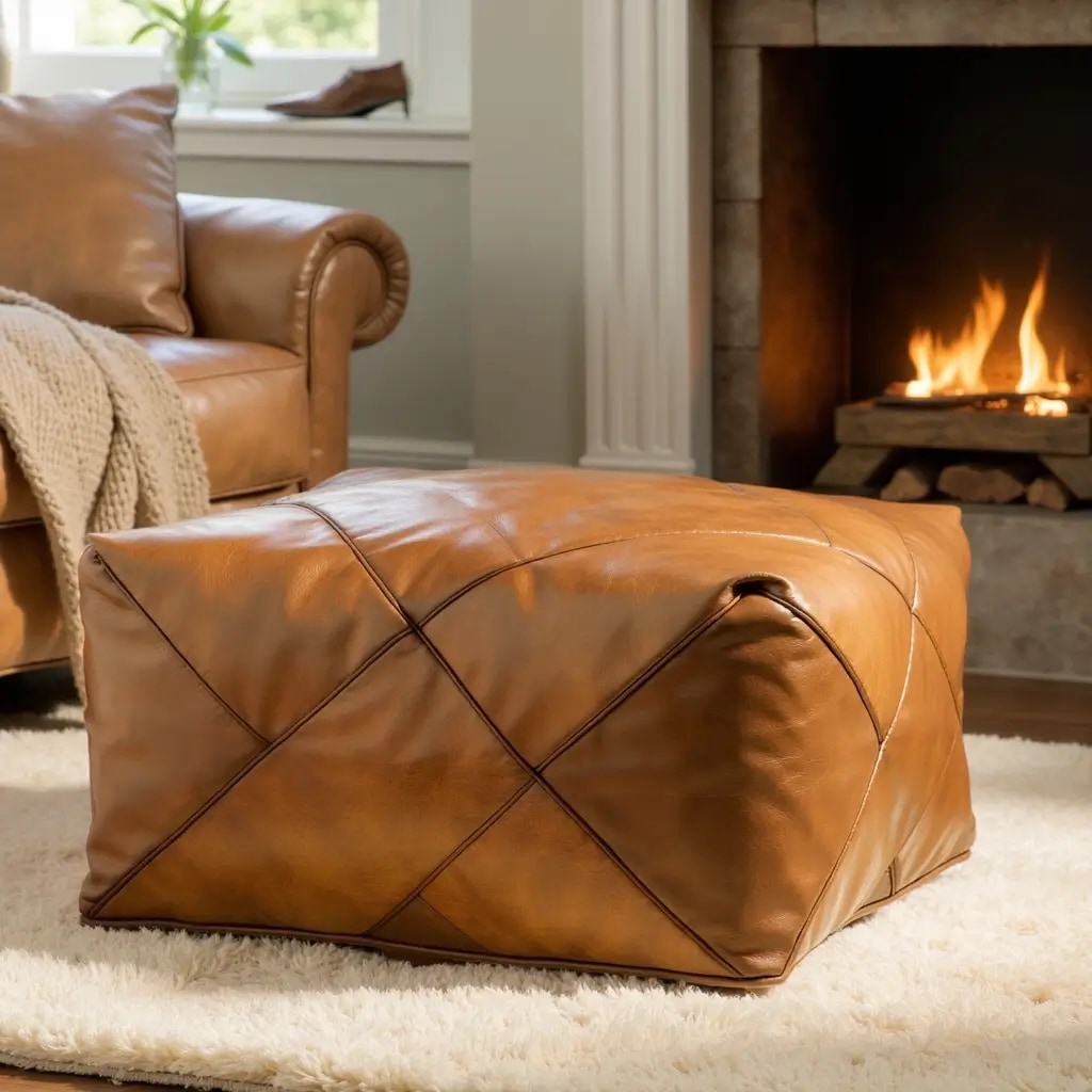 8. How a Genuine Leather Pouf Ages Over Time (What to Expect)