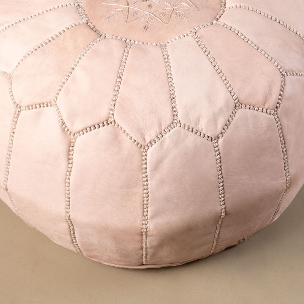 As Moroccan-style decor has grown in popularity, the market has filled with look-alike poufs made from synthetic or low-grade materials—often marketed using the same language as authentic pieces. Faux leather now looks convincing online, making it harder for buyers to tell the difference at a glance.
