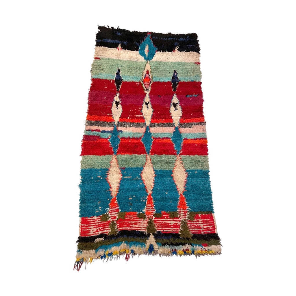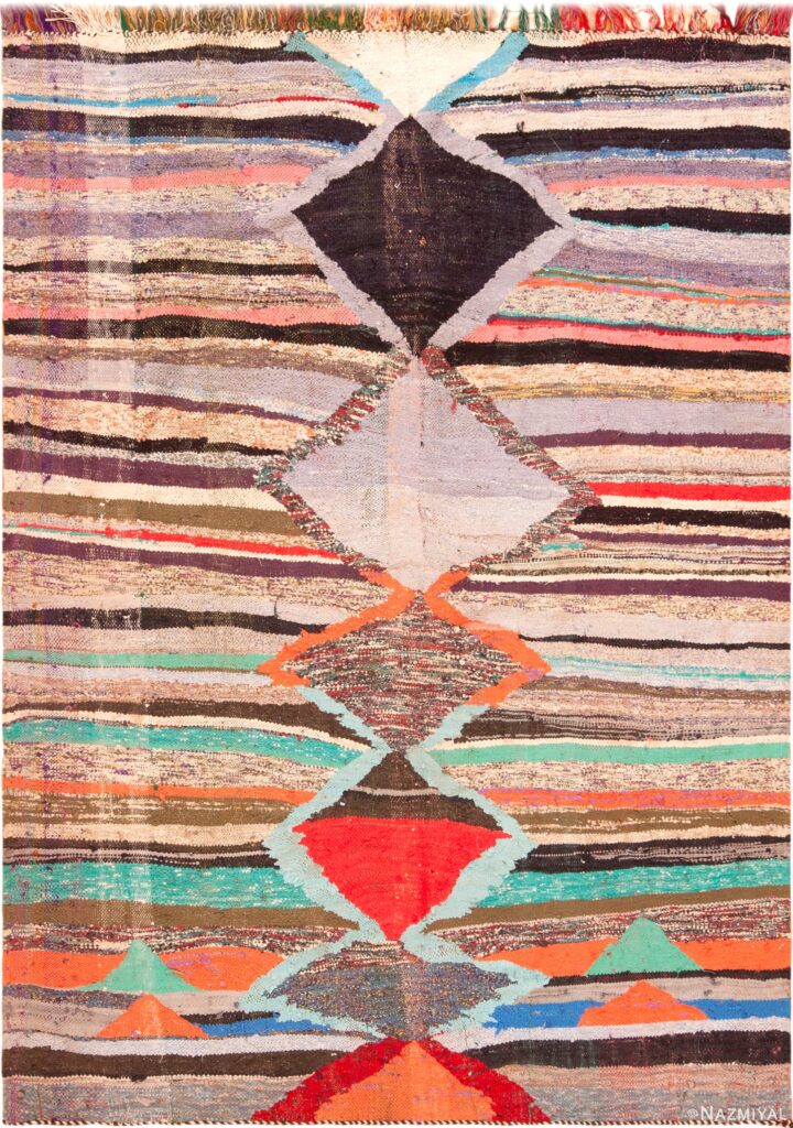 A Boucherouite rug is a Moroccan rug unlike any other. At first glance, it can feel chaotic—bold colors, irregular patterns, and unexpected textures. That reaction is natural. Boucherouite rugs were never meant to follow traditional design rules or visual harmony as we usually define it.