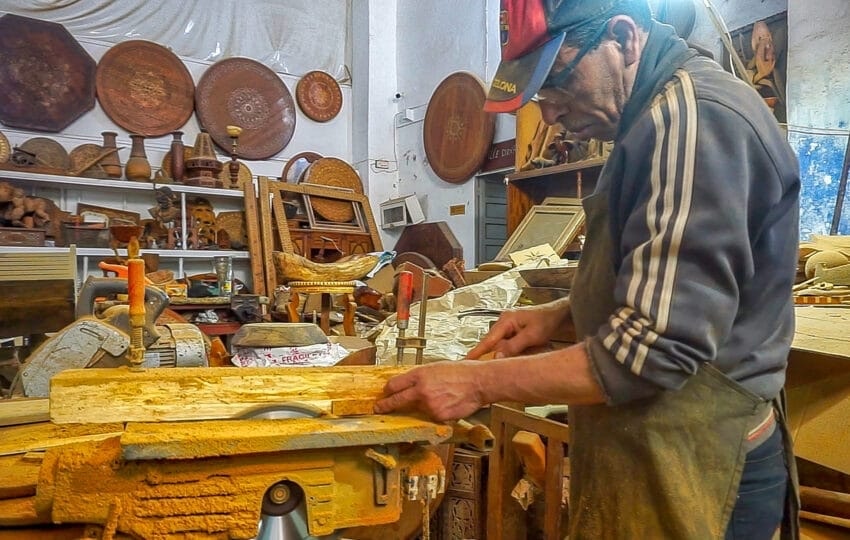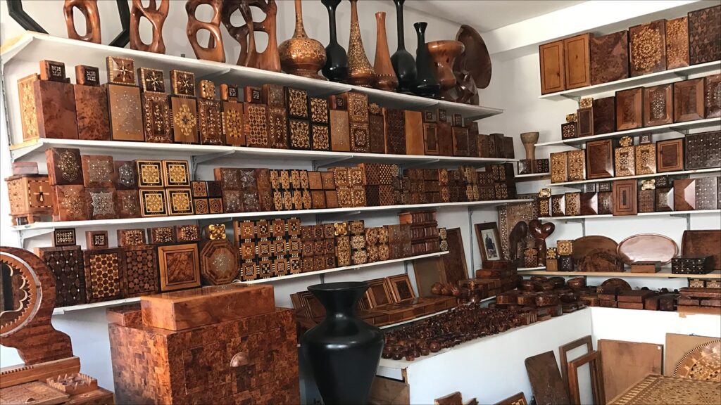 Walking through Essaouira’s medina, you’ll still find small workshops where marquetry is made quietly, piece by piece. Not factories. There are no production lines involved. Just benches, tools, and time.