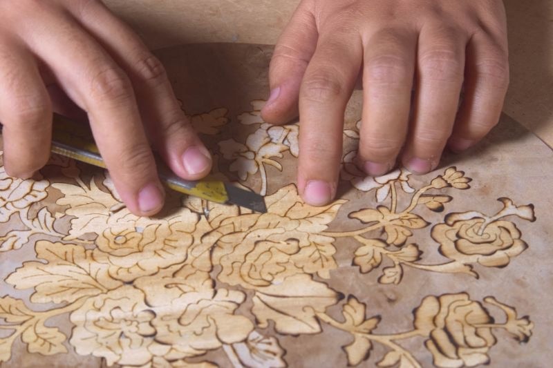 Not every inlaid wooden object is marquetry—and not every patterned surface is handmade.